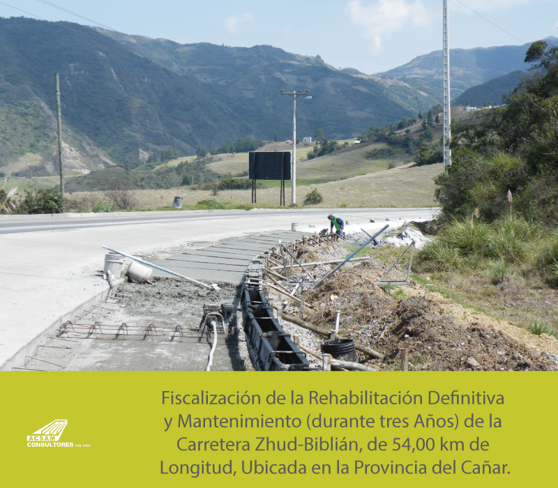 Fiscalización de la Rehabilitación Definitiva y Mantenimiento (durante tres Años) de la Carretera Zhud-Biblián, de 54,00 km de Longitud, Ubicada en la Provincia del Cañar.
